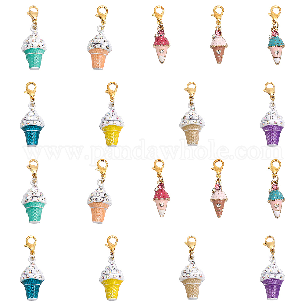 18шт. украшения в виде мороженого из эмали и страз, подвеска с застежкой из цинкового сплава, подвески на клипсах (02FPZ2)