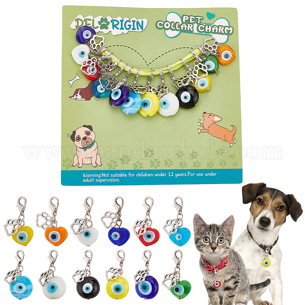 12Шт сердце/плоский круглый с украшениями кулон лэмпворк сглаза, подвески из клешней лобстера, подвески на клипсах, подвески в виде кошачьих лап, для украшения домашних животных