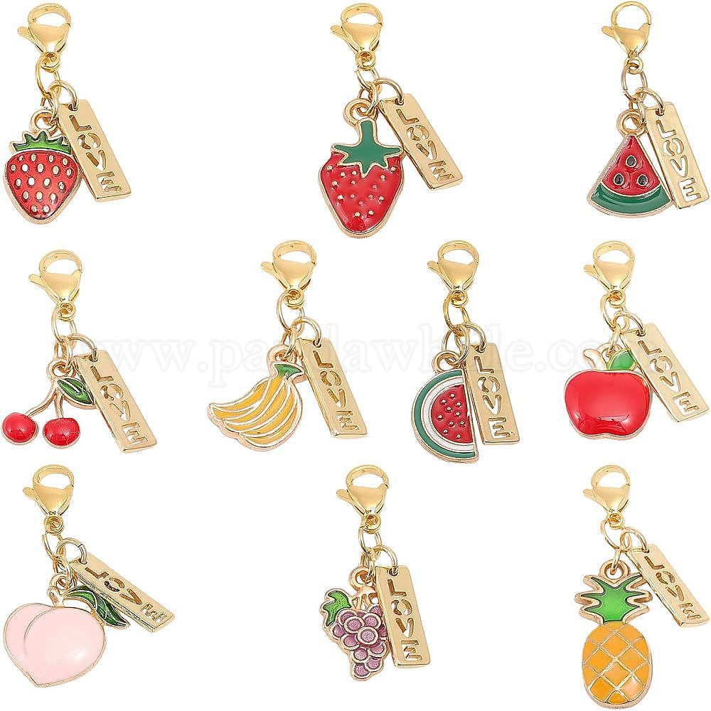 Подвесные украшения из сплава и эмали на фруктовую тематику, с латунным брелком в виде слова «любовь» и 304 застежками-карабинами из нержавеющей стали, подвески на клипсах (02FQA7)