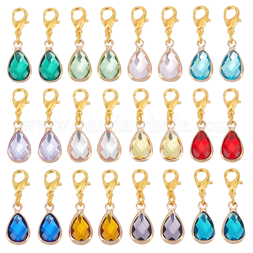 24шт 12цвета граненые стеклянные подвесные украшения, подвески с подвесками на клипсах, подвески из сплава с застежками-лобстерами, для брелка, кошелек, украшение для рюкзака, слеза