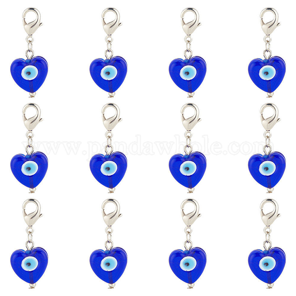 • Синий Подвеска лэмпворк ручной работы от сглаза, очаровательные застежки-лобстеры из сплава, подвеска на клипсе, для брелка, кошелек, украшение для рюкзака, сердце с сглаза, синие, 38 мм, 12 шт / комплект