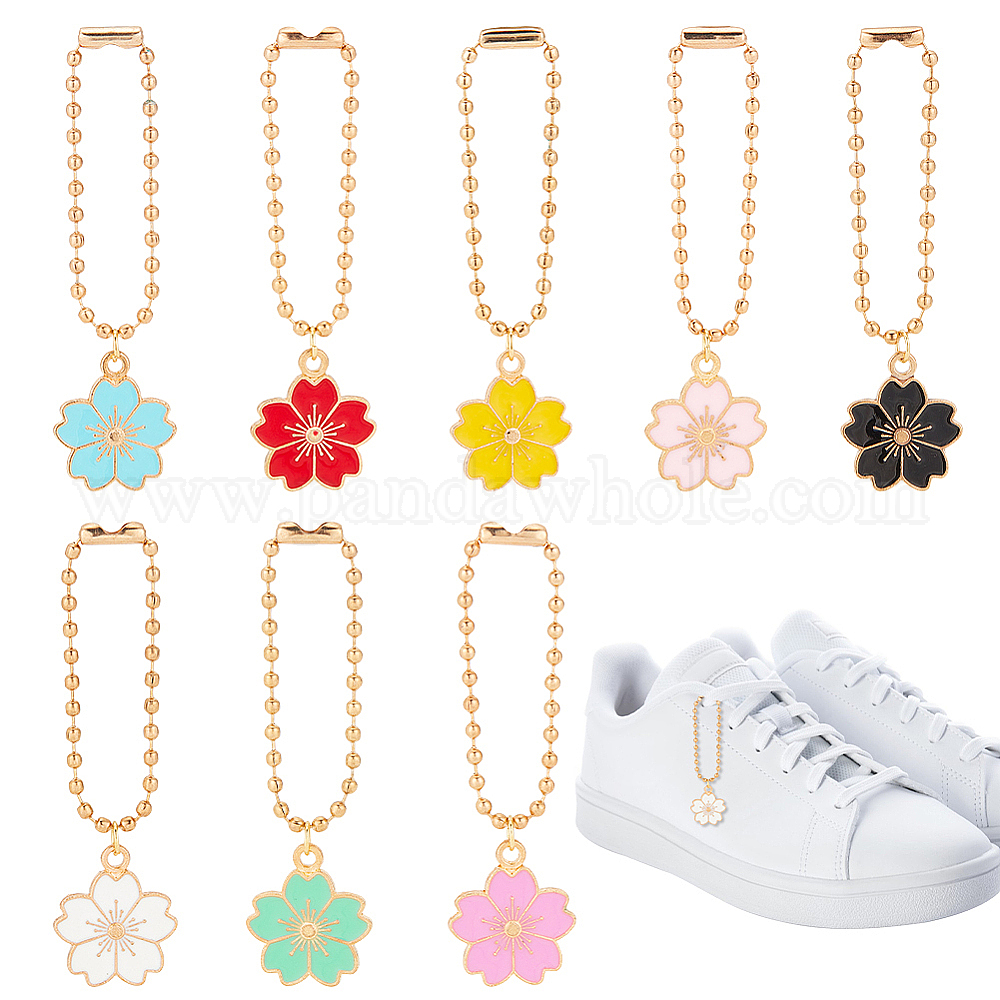 • (52) Непрозрачная лаванда Сплав эмаль сакура цветок подвески украшения, с цепями железный шар, разноцветные, 65 мм, 8 шт / комплект
