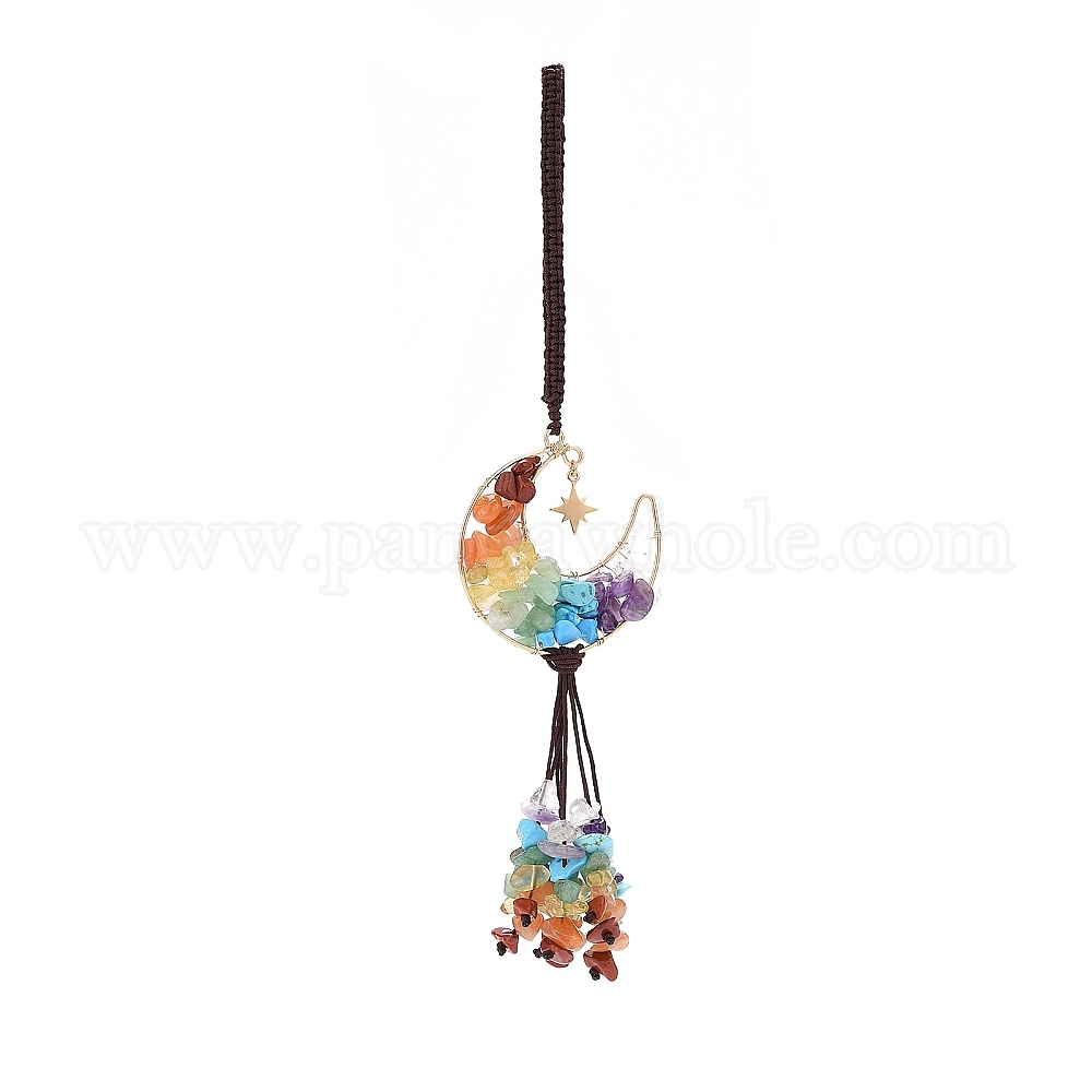 Обернутые проволокой фишки из натуральных драгоценных камней, большие подвесные украшения, с красной медью латунной проволокой и нейлоновым шнуром, плоский круг с деревом жизни и луной со звездой
