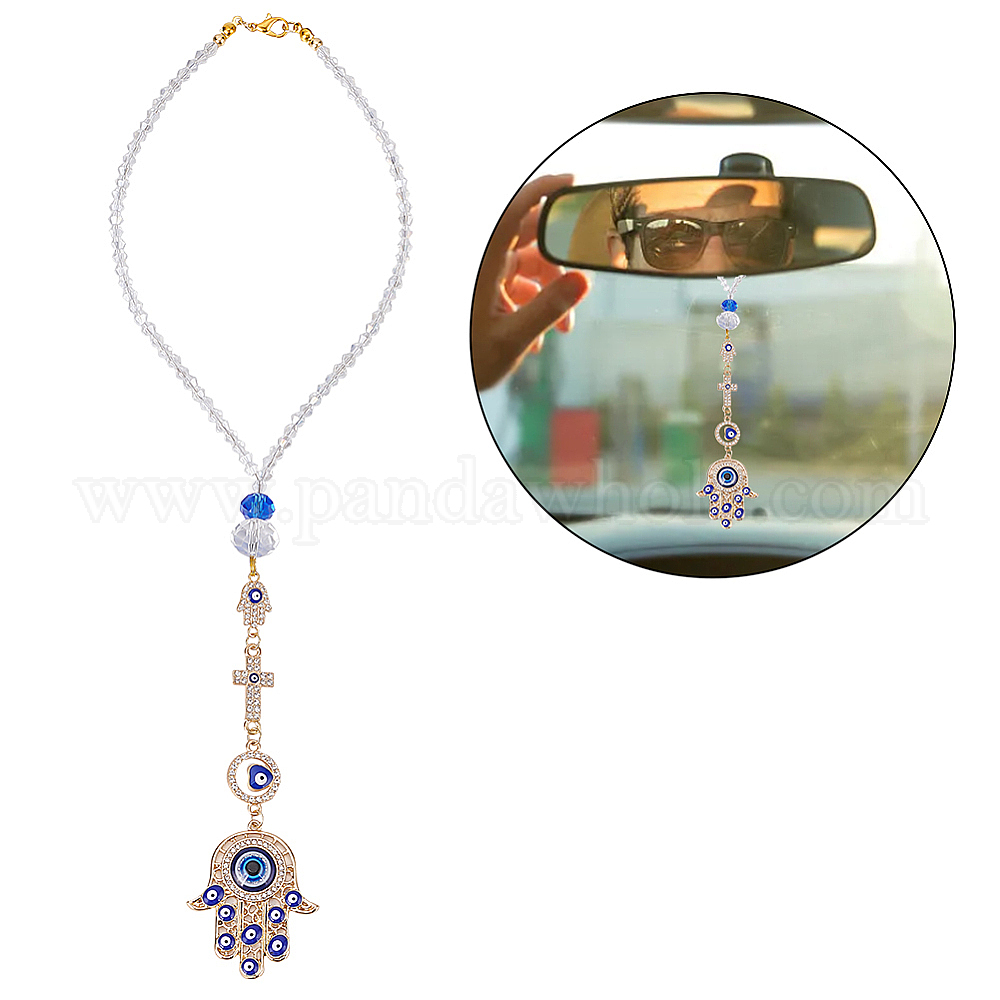 Рука хамсы/рука мириам с подвеской от сглаза, с цепочкой из стеклянных бусин и застежками-карабинами из сплава, украшение для подвески автомобиля