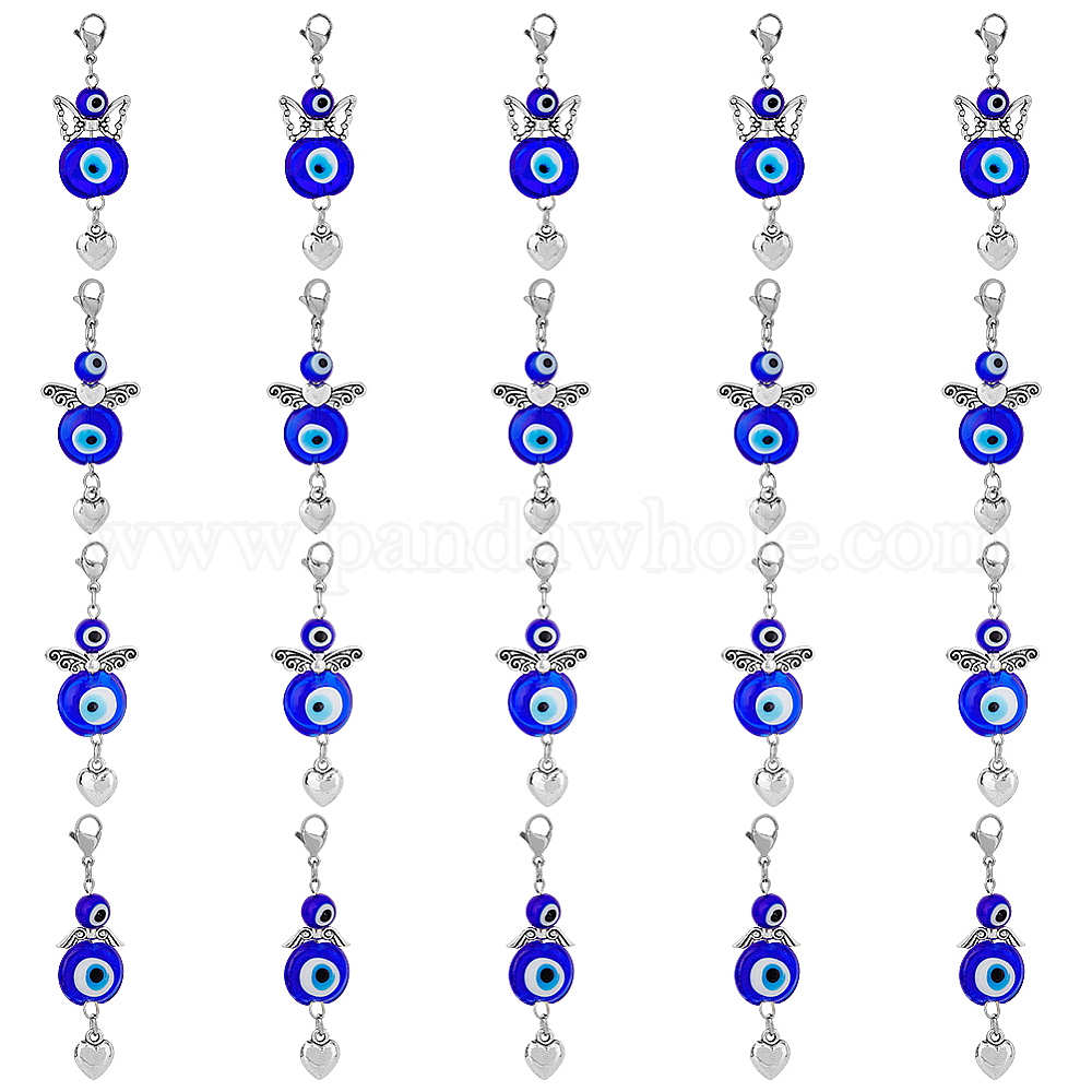 • Морской Синий 20шт фея с сердцем тибетский стиль сплав кулон украшает, с бусинами лэмпворк от сглаза и 304 застежками-карабинами из нержавеющей стали, разнообразные, Marine Blue, 57 мм