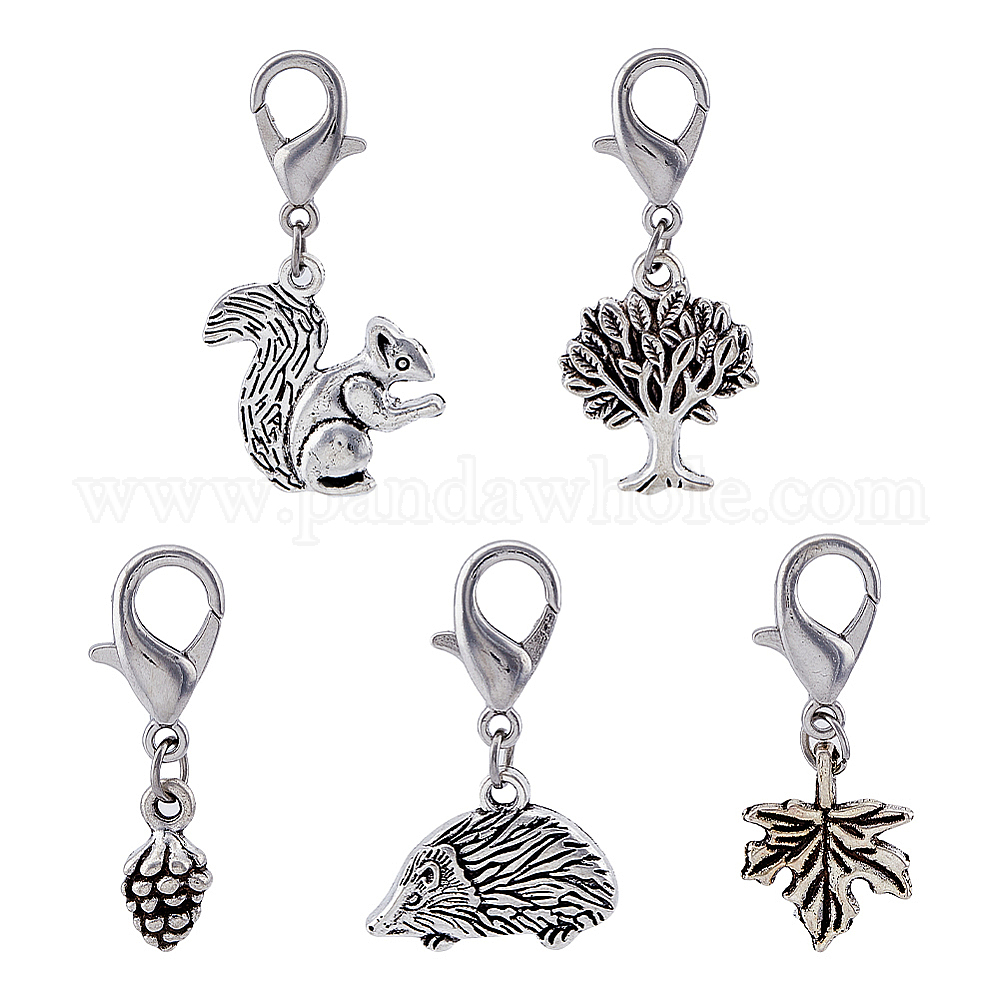 10 наборы осенние сплав подвески украшения набор, ежик, дерево, лист, сосновая шишка и белка, подвески с застежкой-лобстером, подвеска на клипсе, для брелка, кошелек, украшение для рюкзака