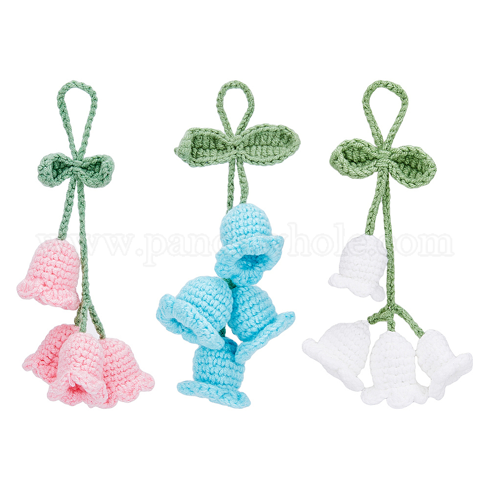 3шт 3 цвета лилии долины вязание кулон из ваты украшения, для украшения автомобиля брелок на сумку (02GQCQ)