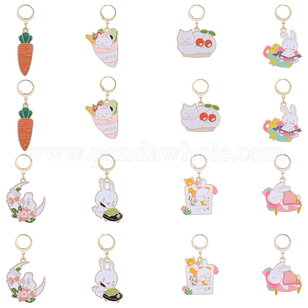 Кролик морковь кошка сплав эмаль кулон украшение, 304 рычажные подвески из нержавеющей стали (02GXNQ)