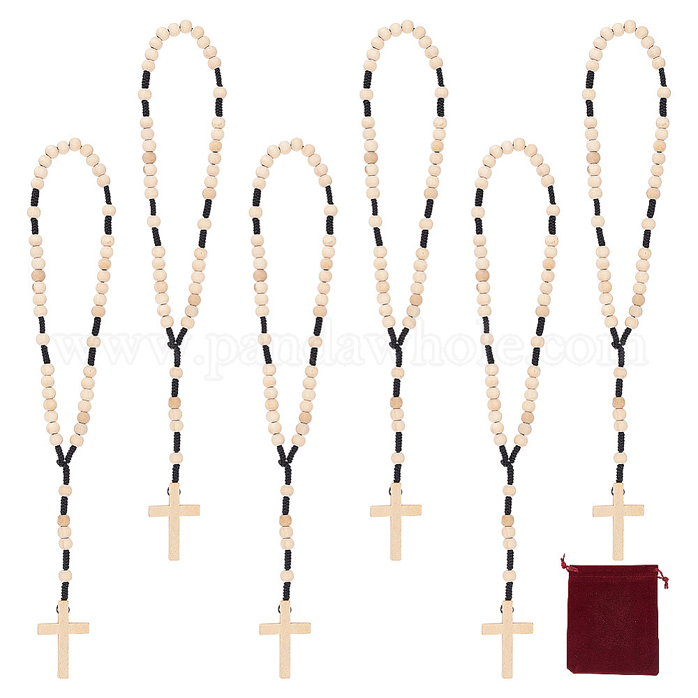 6шт. деревянные кресты подвесные украшения, , для автомобильного зеркала заднего вида, с 6прямоугольными бархатными мешочками