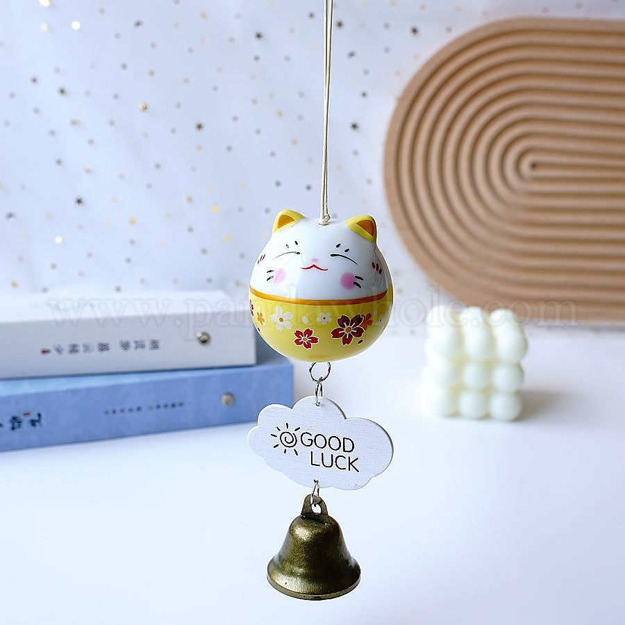 Фарфор манэки нэко подвесной колокольчик колокольчики декор, фэн-шуй счастливый кот для интерьера автомобиля подвесные украшения