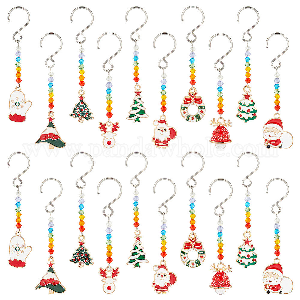 Рождественские украшения из сплава эмали, со стеклянными бусинами и S-образными застежками из нержавеющей стали, разнообразные