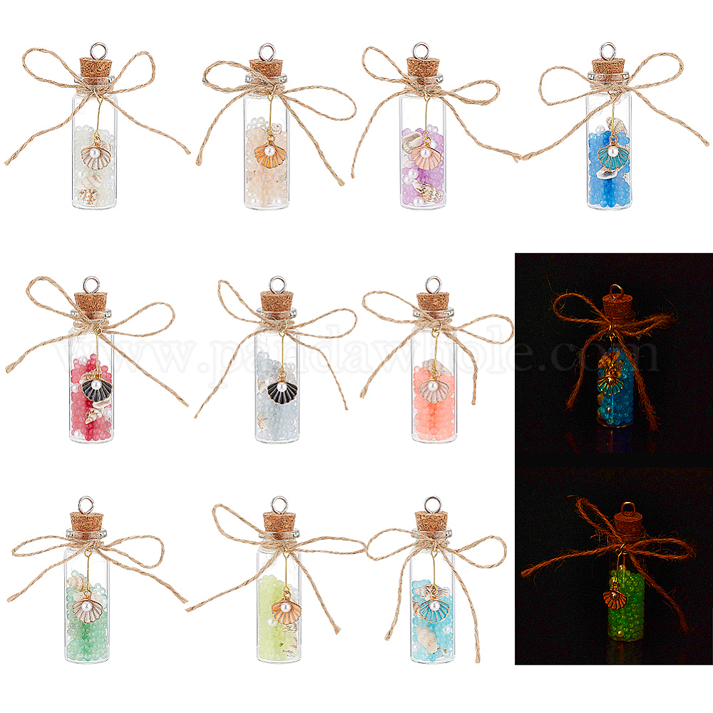 Светящиеся бусы в подвесных украшениях из стеклянных бутылок, с подвеской из легированной эмали и бусинами из натуральных спиральных ракушек, для брелка, кошелек, украшение для рюкзака