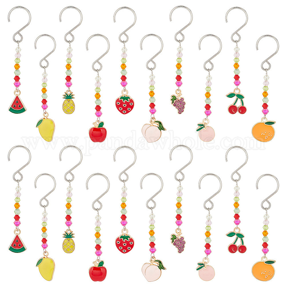 Подвесные украшения из сплава эмали с фруктами, со стеклянными бусинами и S-образными застежками из нержавеющей стали, ломтик арбуза/манго/апельсин
