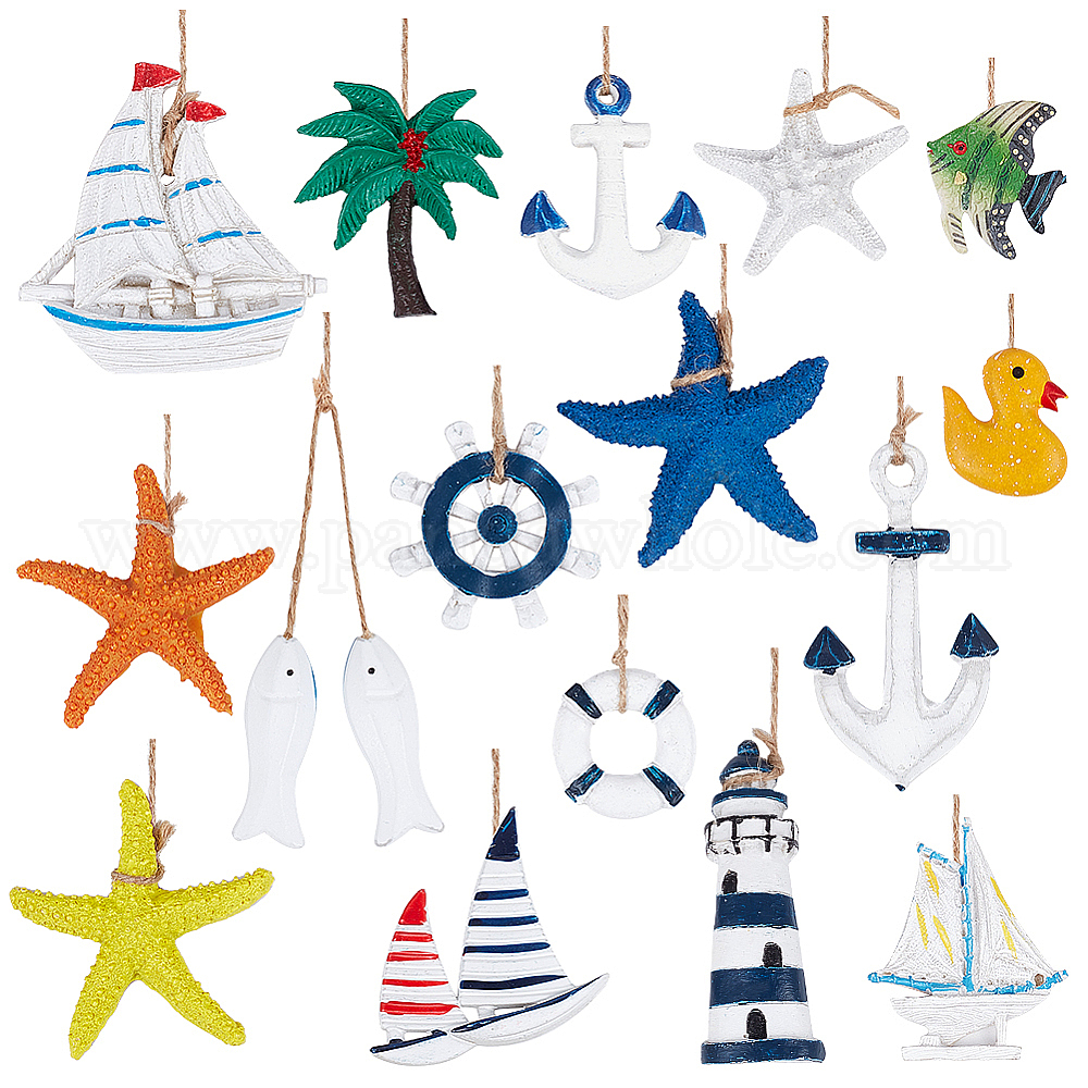 16 шт 16 стили подвесные украшения из смолы на тему океана, Фестиваль джутовой веревки