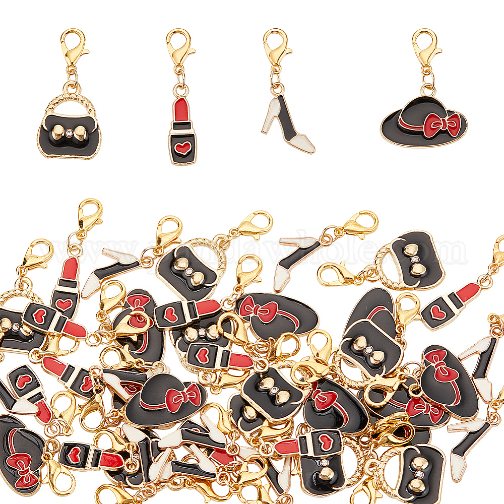 Женская тема покупок, подвеска из эмали из сплава, украшения, с застежкой омар коготь, туфли на высоком каблуке/помада/шляпа с бантом
