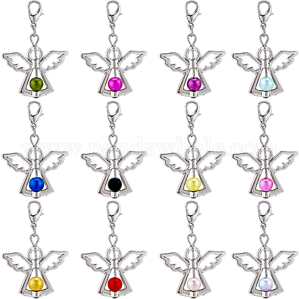 24 шт. 12 цвета подвески из сплава украшения, с пластмассой ccb, застежка когтя омара, античное серебро, крыло ангела
