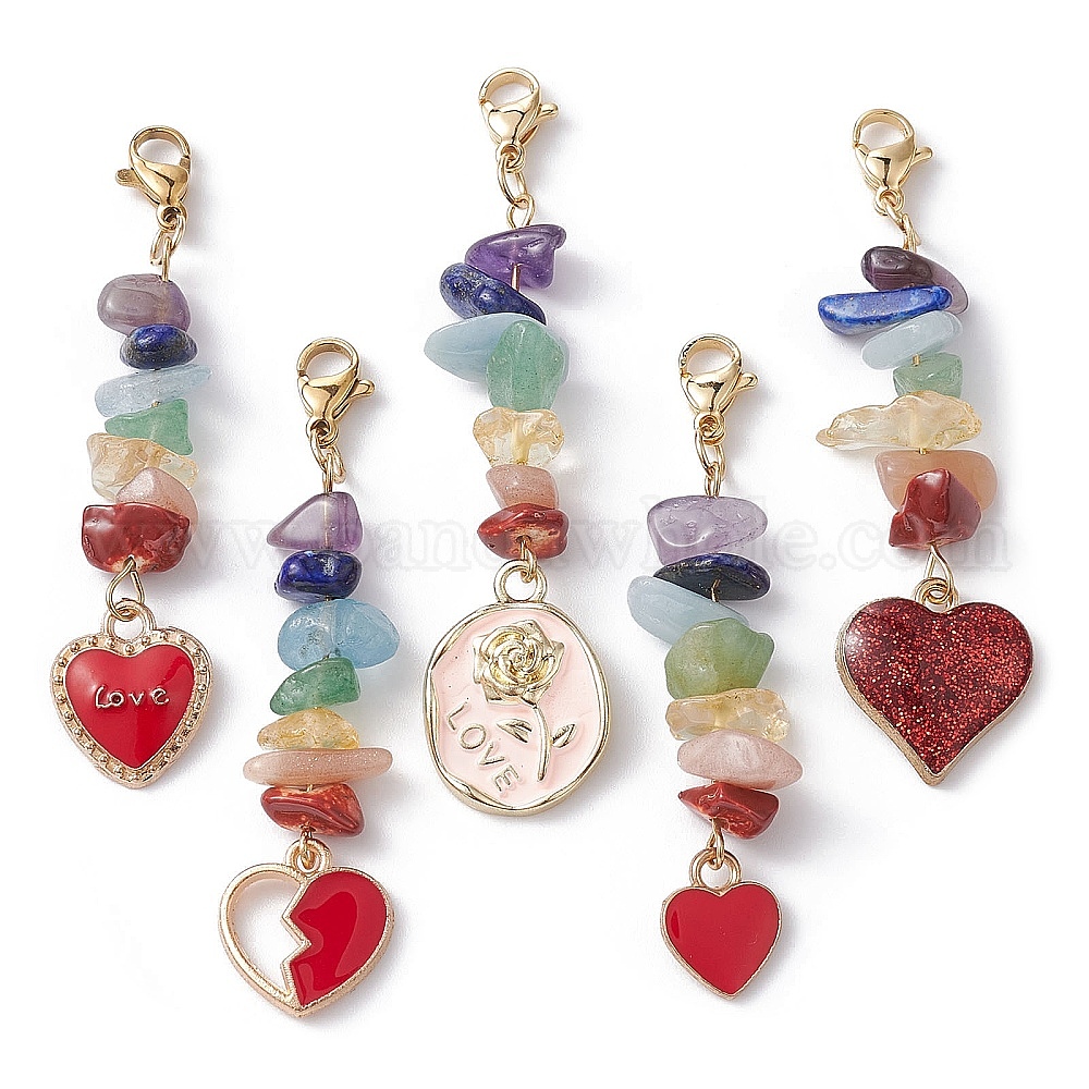 Украшение кулона с драгоценными камнями чакры, с подвеской из легированной эмали в форме сердца/овальной формы и 304 застежками-карабами из нержавеющей стали., украшение на день святого валентина