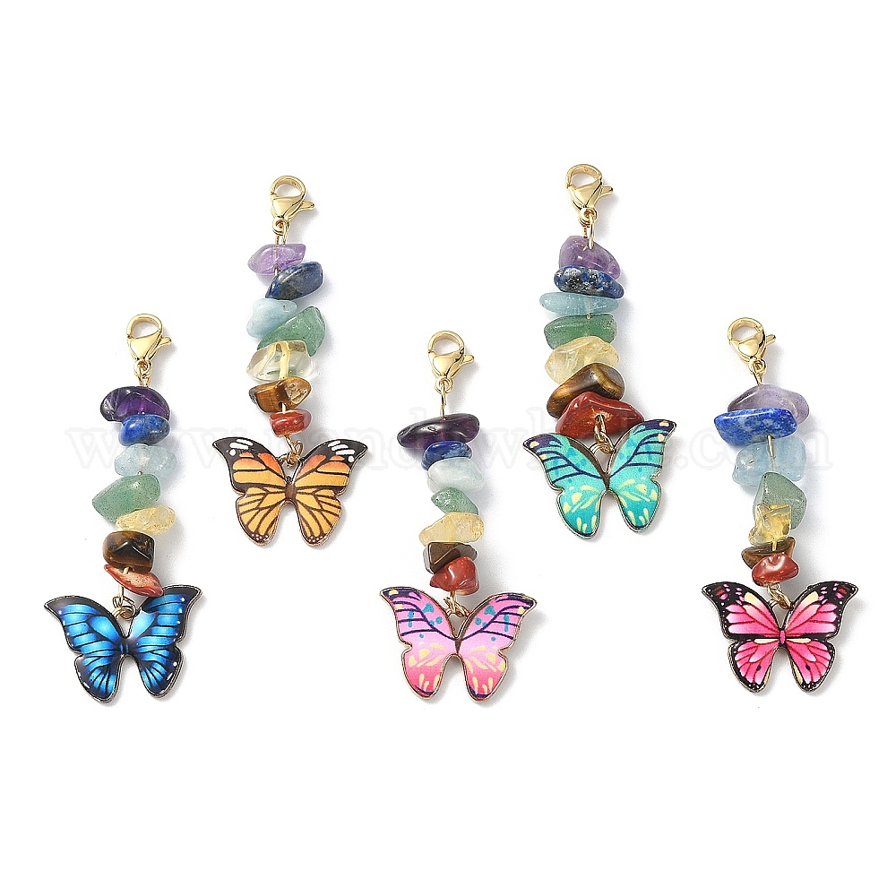 Подвески из эмали из сплава бабочки, с крошками натуральных драгоценных камней и 304 застежками-карабами из нержавеющей стали.