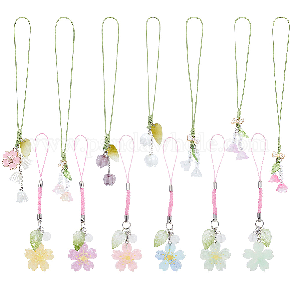 12шт 12 стили цветочные подвесные украшения в стиле лэмпворк, подвесное украшение из нейлоновой веревки