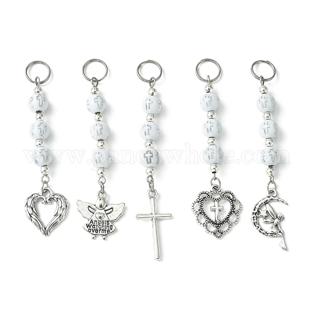 Круглые подвески из акриловых бусин с крестообразным покрытием, с подвесками из сплава сердце/угол/крест/луна