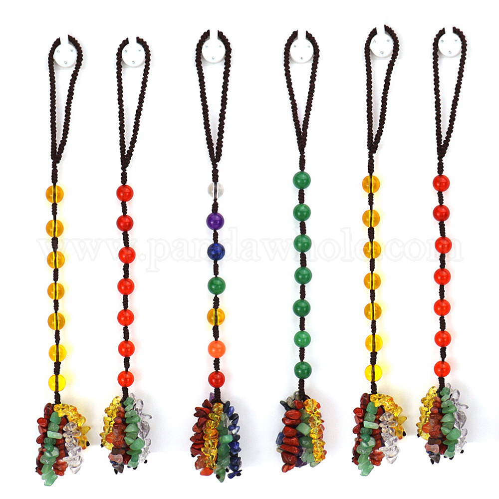 Круглые подвески из драгоценных камней и бисера, Подвесные украшения для автомобиля с кисточками из полиэфирного шнура и кисточкой из драгоценных камней