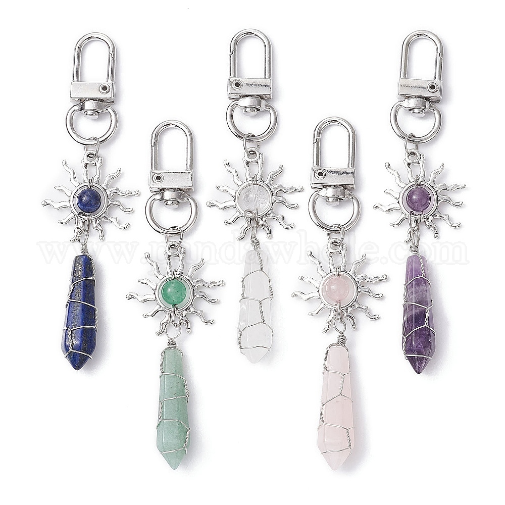 Кулон с драгоценными камнями в проволочной оплетке, украшение в виде пули из натурального камня, с подвесками от солнца из сплава и поворотными застежками