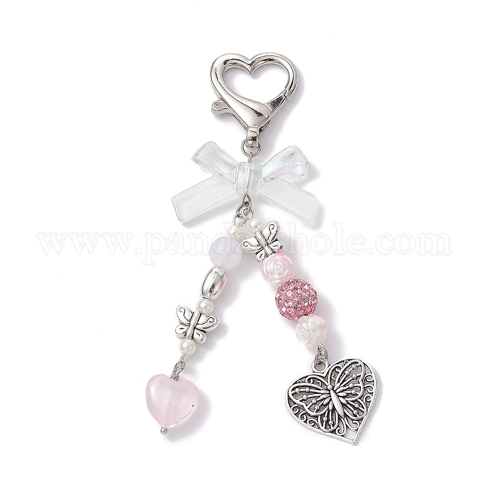 Акриловые подвесные украшения с бантом в виде сердца и бабочки, с застежками-когтями из сплава в форме сердца