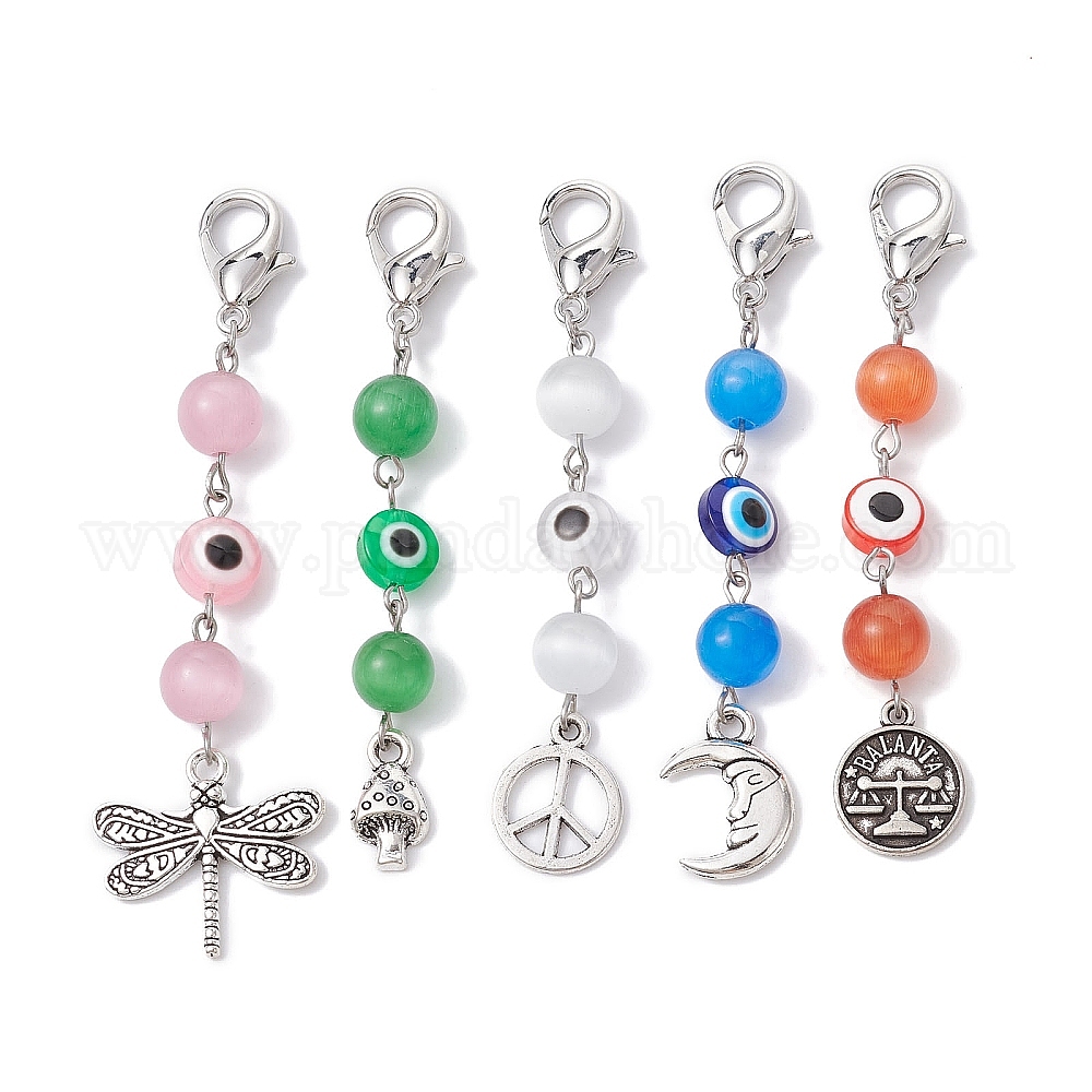 Круглый кулон «кошачий глаз» и смола «сглаз», Сплав с застежками когтя омара, разнообразные (02PK1Y)