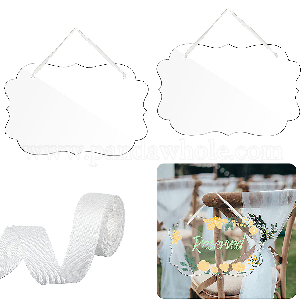 Волнистый прямоугольник акриловый пустой знак подвеска украшения, с односторонними атласными лентами из полиэстера