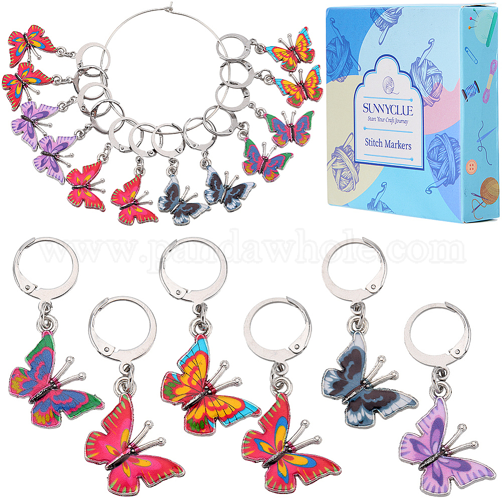 Подвески из сплава с эмалью, с 304 серьгами из нержавеющей стали, бабочка