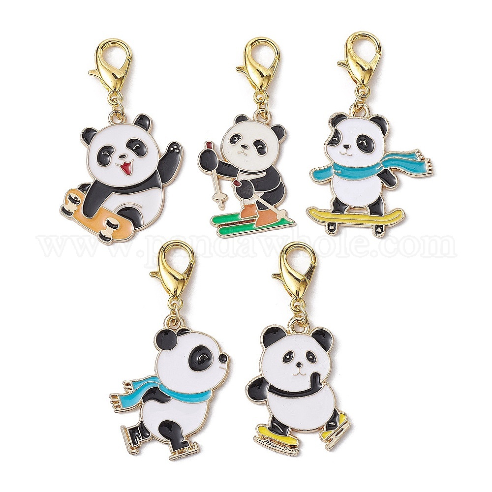 Подвесные украшения из эмали из сплава панды, с цинковым сплавом застежками омаров коготь