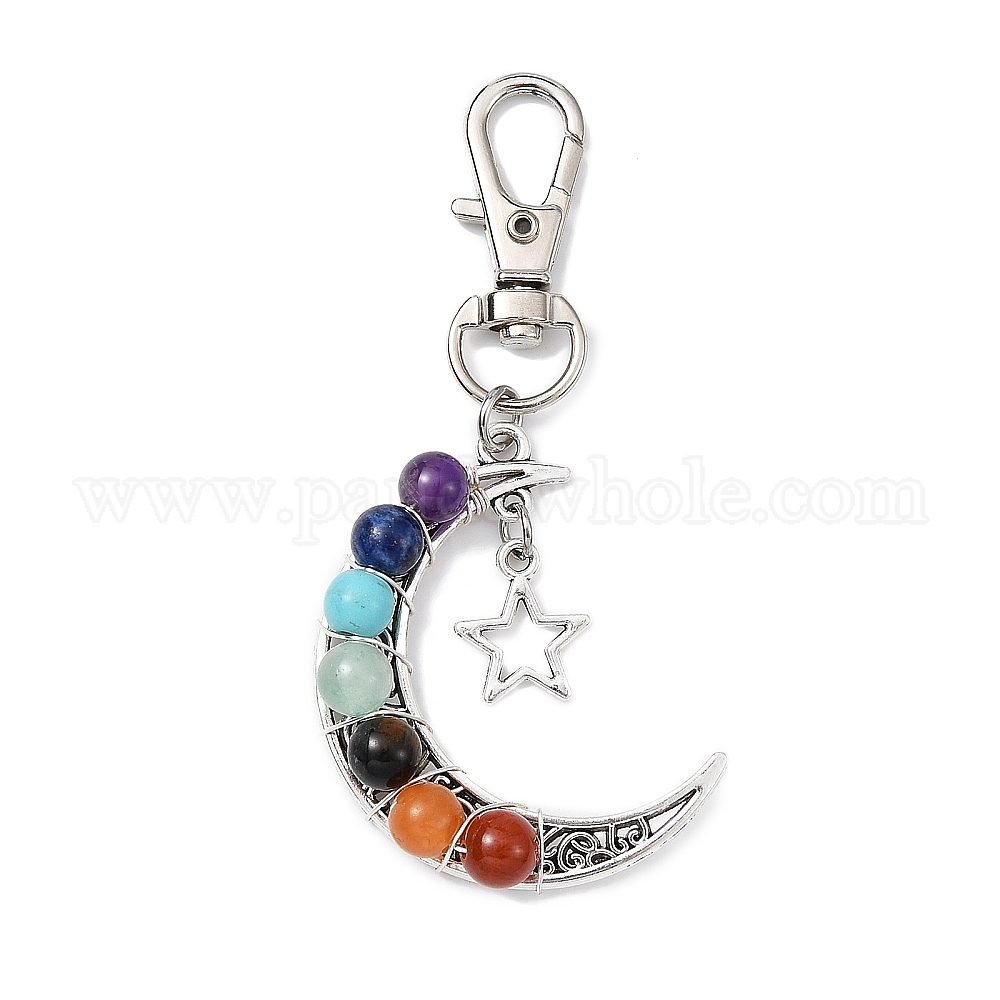 Обернутая проволокой чакра, синтетические и натуральные смешанные камни и сплавы, подвески в виде луны, украшения, с поворотными застежками когтя омара