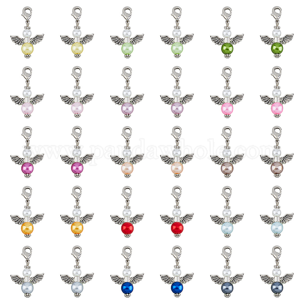 Ангельские подвески из сплава и акрила в тибетском стиле, с латунными карабин-лобстерами