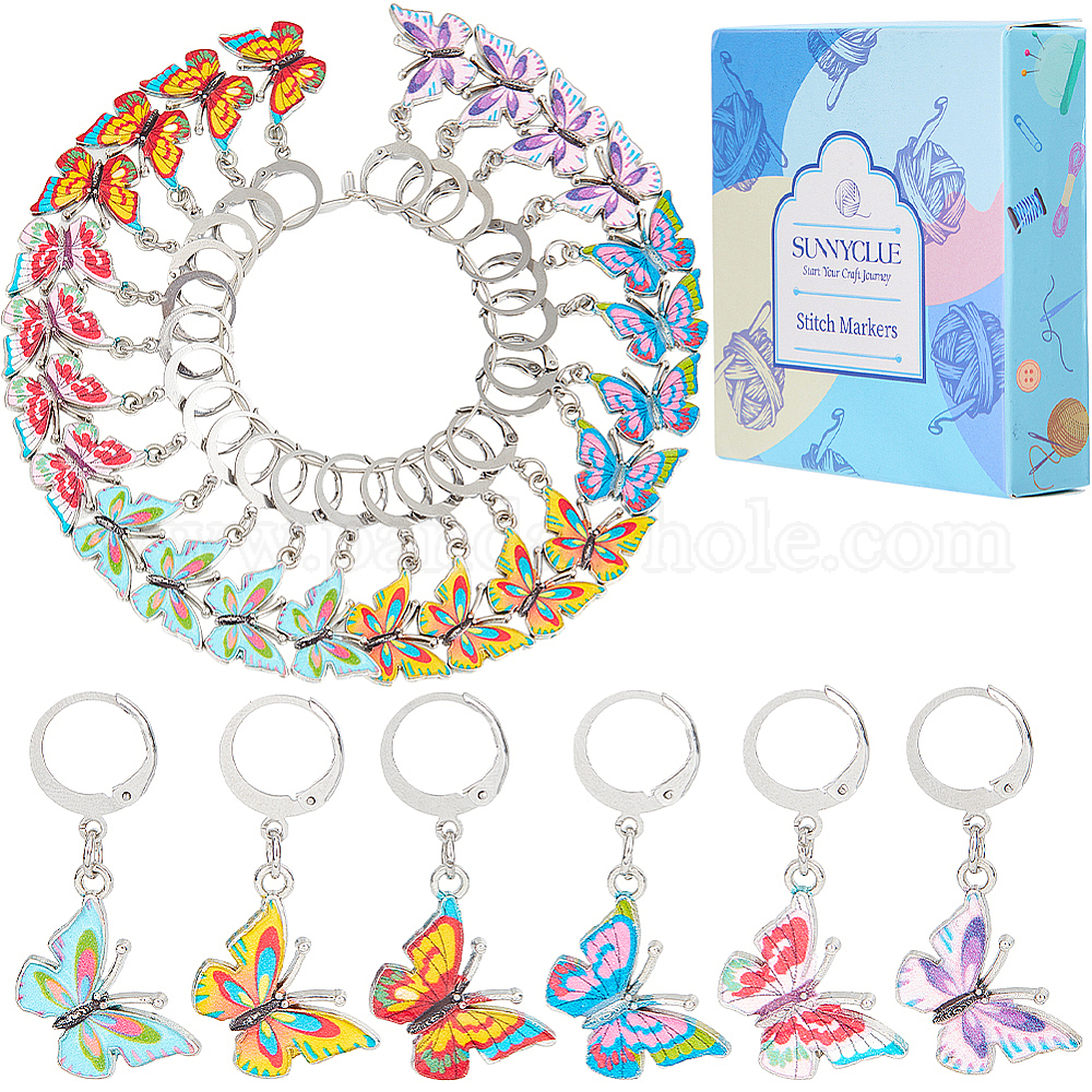 24шт 6 цветной сплав эмали кулон украшения, с 304 фурнитурой из нержавеющей стали, бабочка