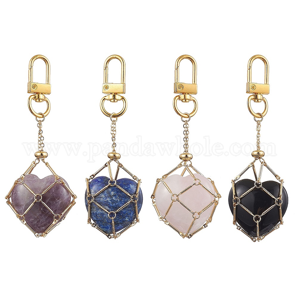 Подвески из натуральных драгоценных камней в форме сердца, с латунным мешочком для макраме и подставкой для камней