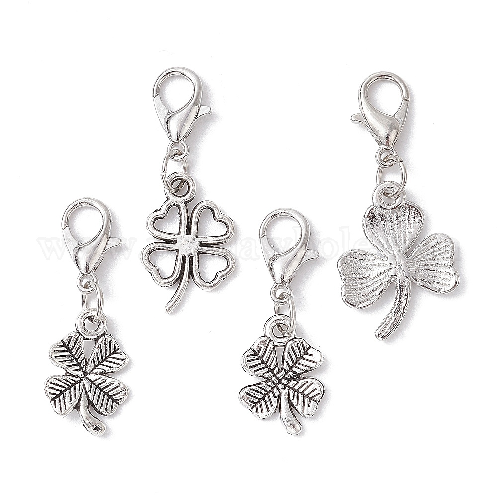 Подвеска из сплава в тибетском стиле клевера, с цинковым сплавом застежками омаров коготь