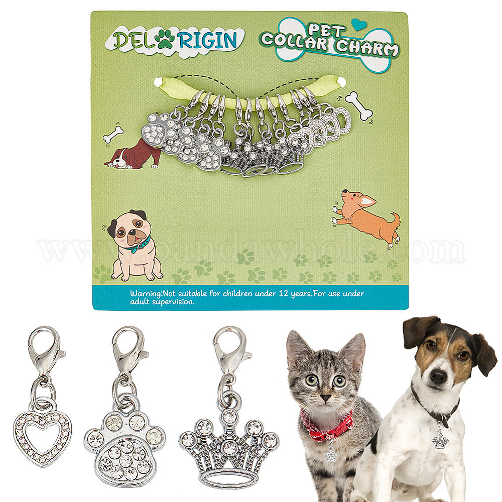 12 шт 3 стили сердце/корона/лапа принт сплава подвеска для домашних животных украшения, Сплав с застежками когтя омара