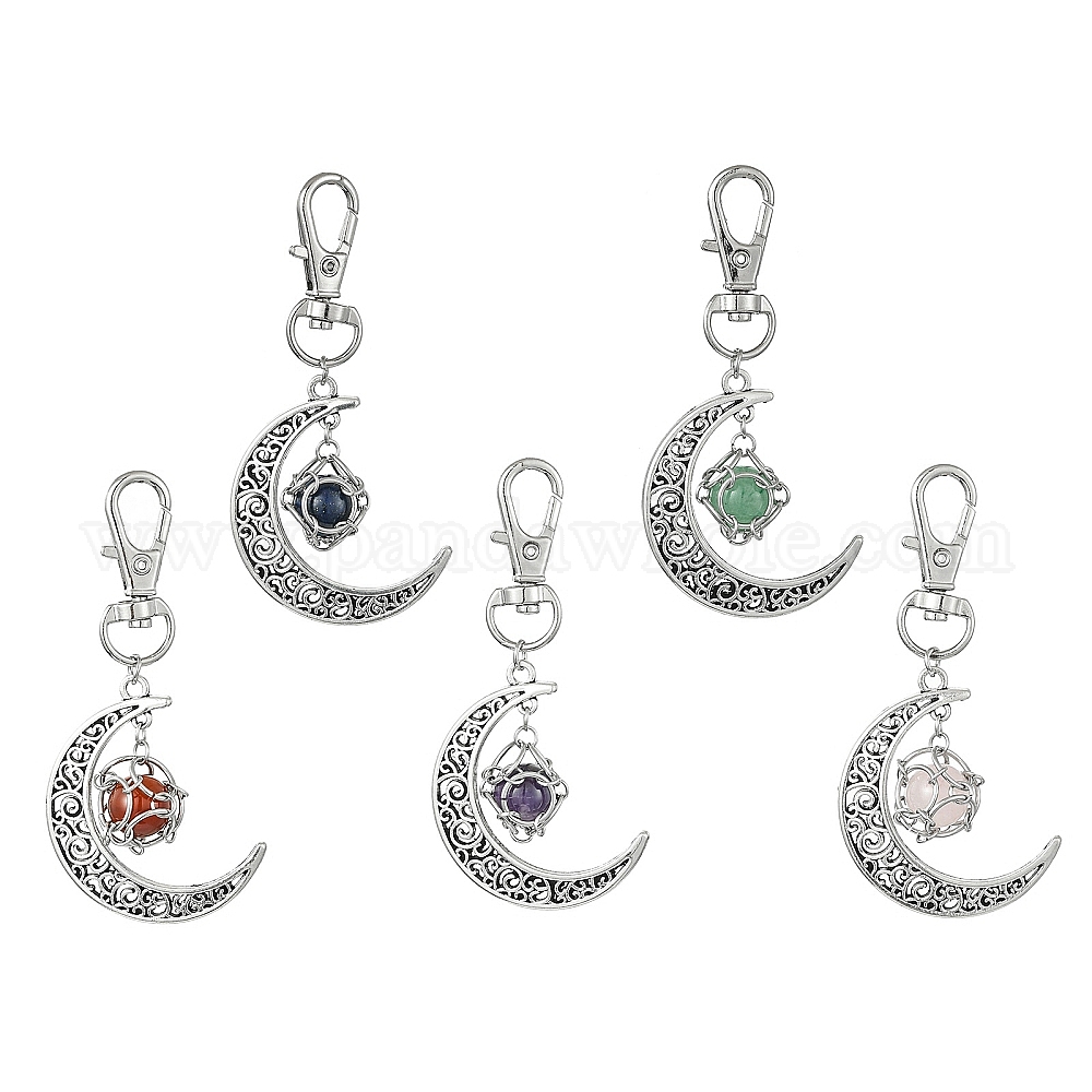 Подвески из натуральных драгоценных камней, Подвеска в форме полой луны из сплава в тибетском стиле и поворотная застежка-когти-омары (02QRZF)