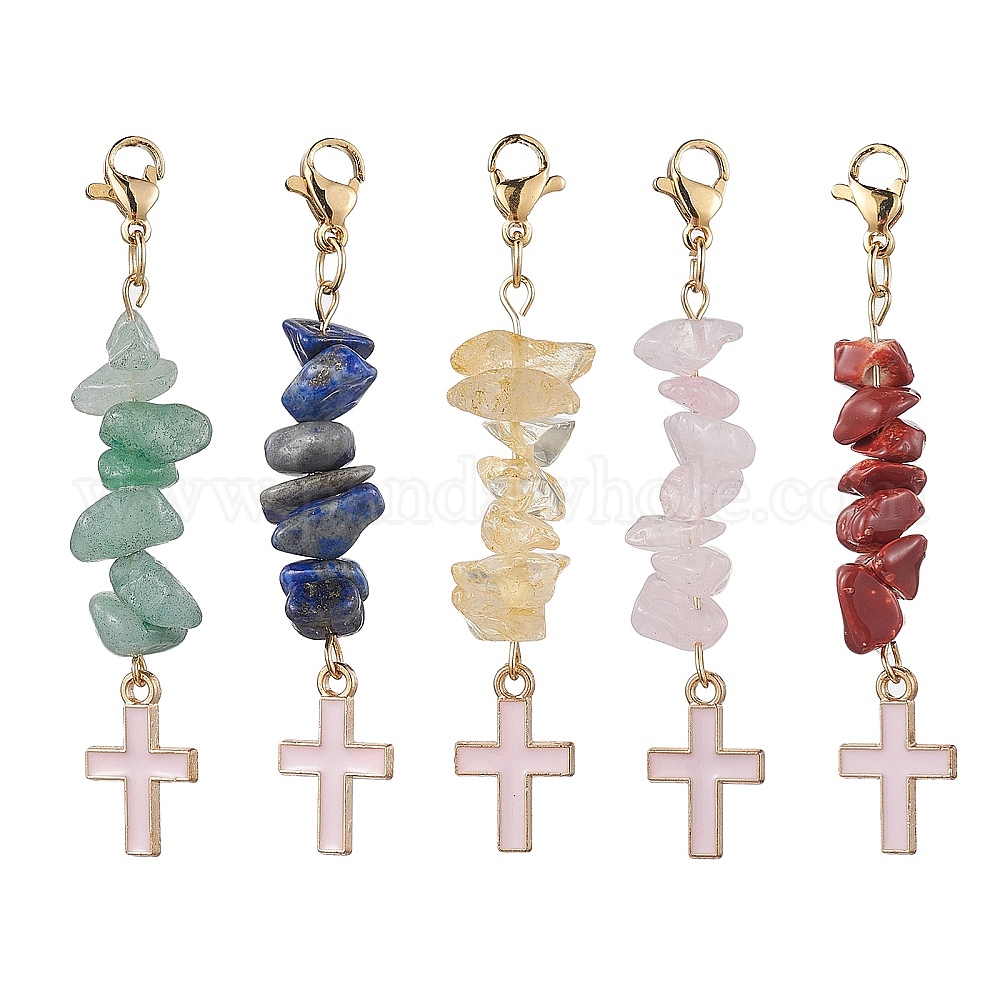 Подвески из натуральных смешанных драгоценных камней, с подвесками из эмали и сплава , крестик