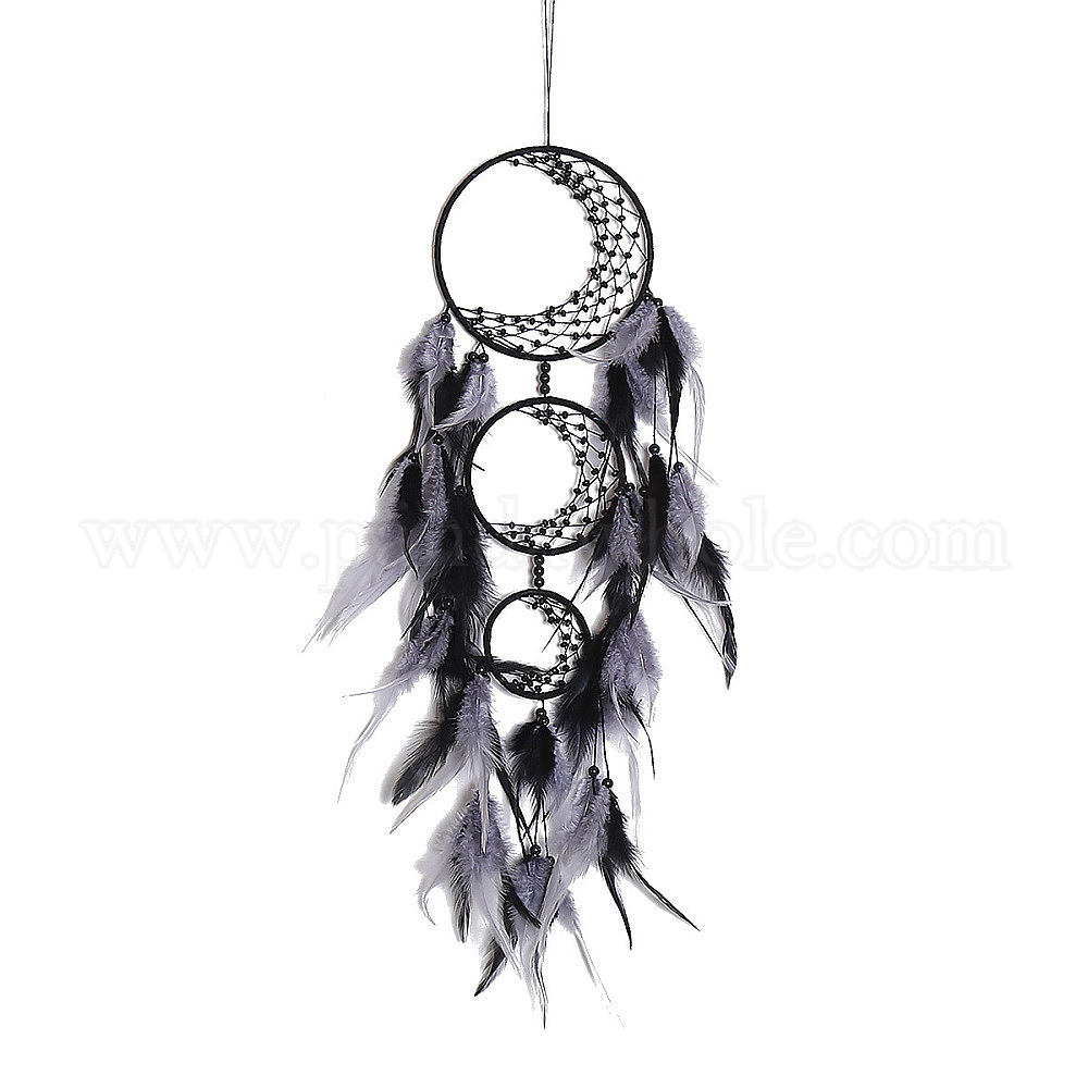 Тканая сетка/паутина в форме луны с тремя кругами с перьями и железом, подвесное украшение для дома, настенное украшение