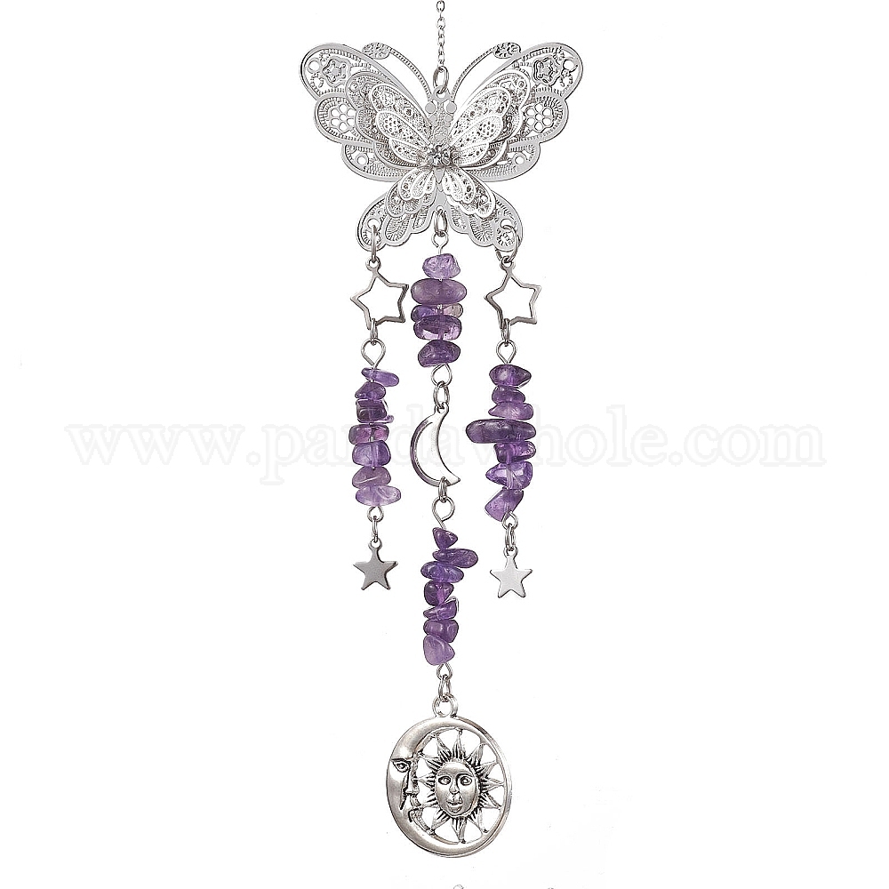 Натуральные аметистовые подвесные украшения, с тибетском стиле сплава подвески, бабочка