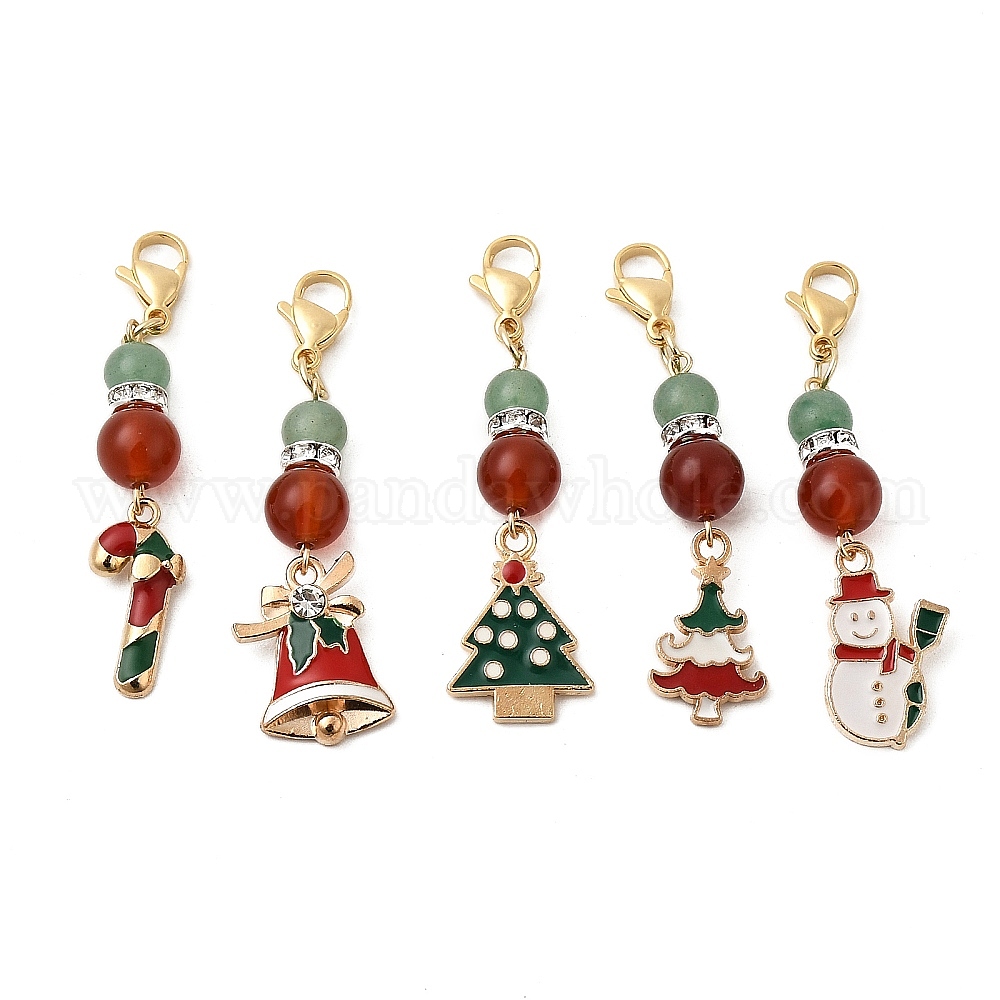 Рождественская елка/колокольчик/снеговик/конфета из сплава эмали подвесные украшения, Подвески из натурального сердолика и зеленого авантюрина для украшений сумок-брелоков
