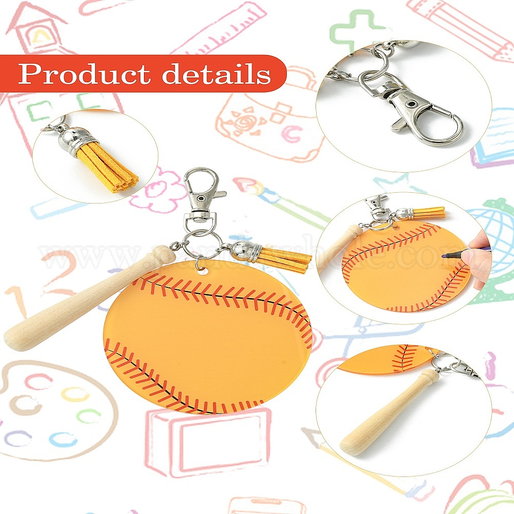 Бейсбольные подвески из акрила и дерева, с железными поворотными застежками-клешнями (02SJK6)