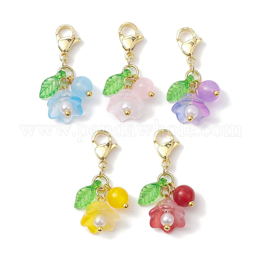 Подвеска из цветочного стекла и натурального и окрашенного малайзийского нефрита, Подвески с застежками-когтями омара для украшения сумок