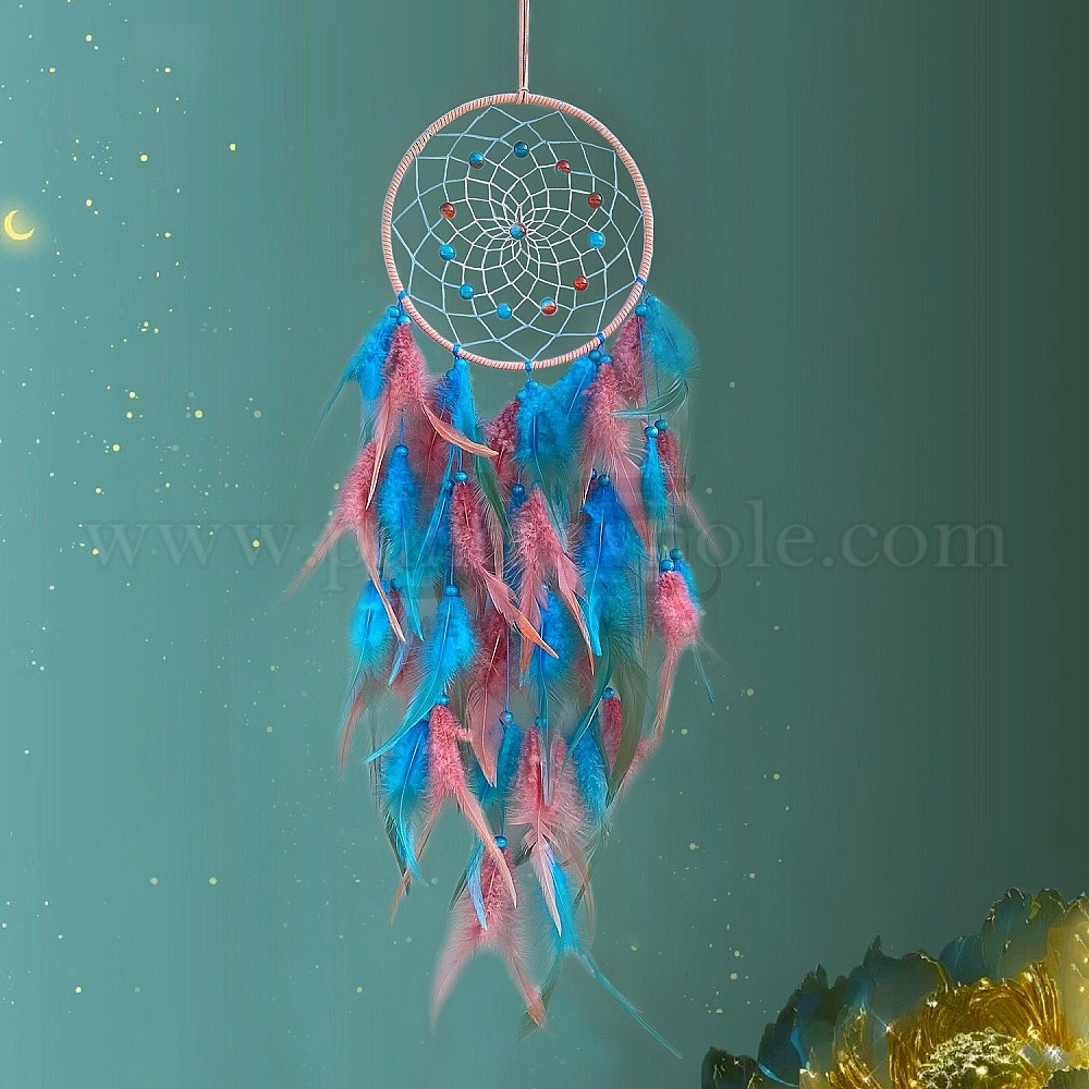 Железный кулон украшение, тканая сетка/паутина с перьями для подвесных украшений дома