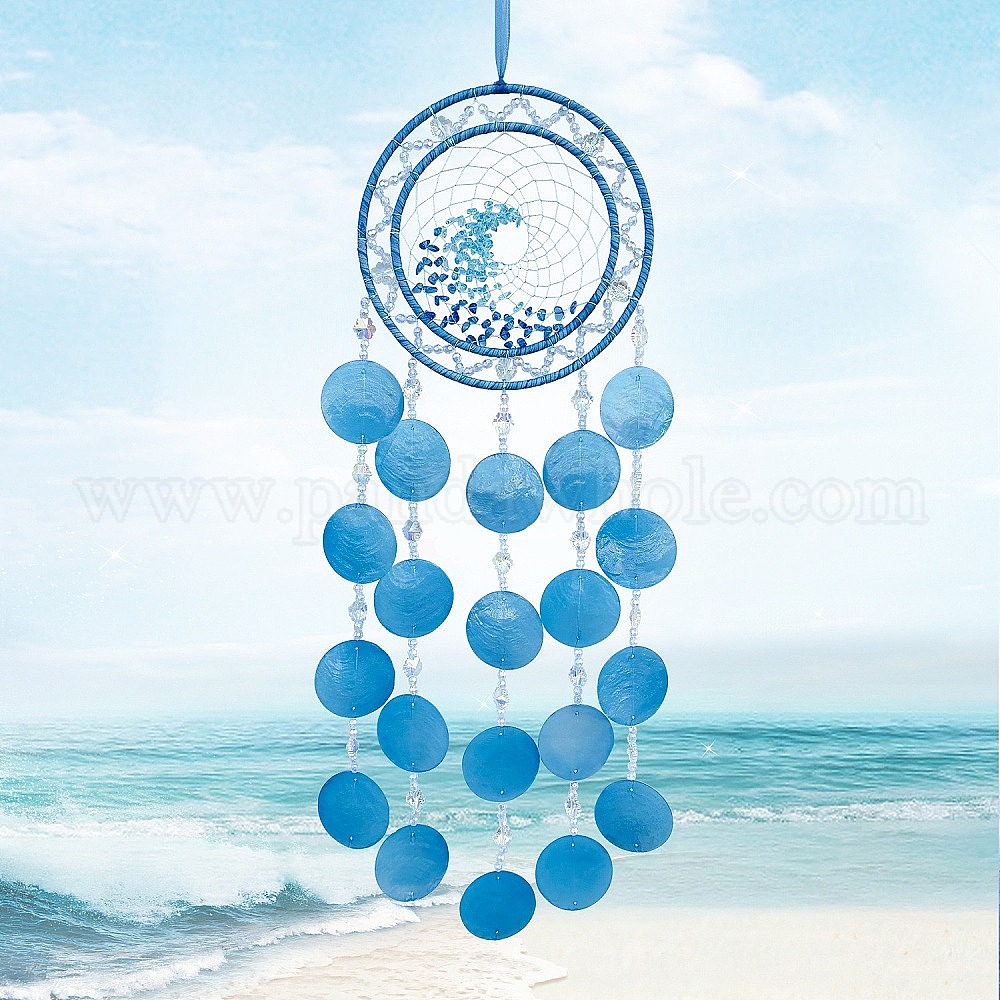 Украшение подвески из железа и натуральных ракушек, тканая сетка/паутина с морской волной для подвесных украшений дома