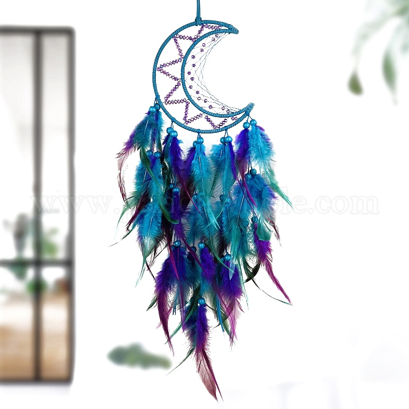 Железный кулон украшение, Лунная тканая сетка/паутина с перьями для подвесных украшений дома