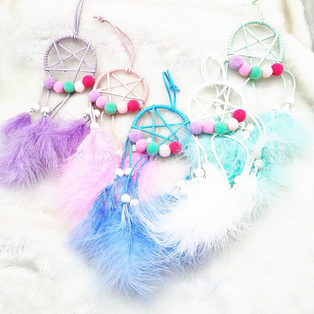 Украшения из хлопкового кулона со звездами, тканая сетка/паутина с перьями для украшения автомобиля