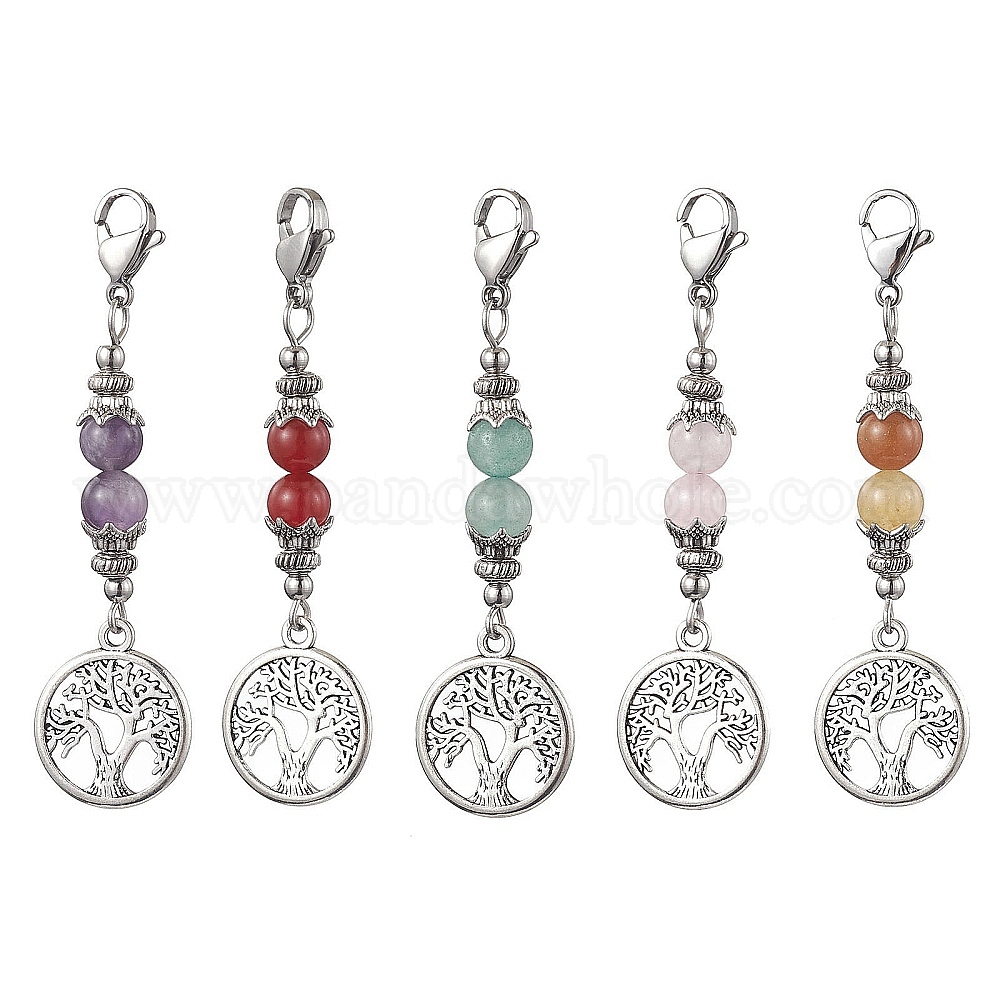 Плоский круглый сплав с подвеской в виде древа жизни, круглые бусины из натуральных драгоценных камней и застежки-когти омара для украшений на брелки для рюкзака