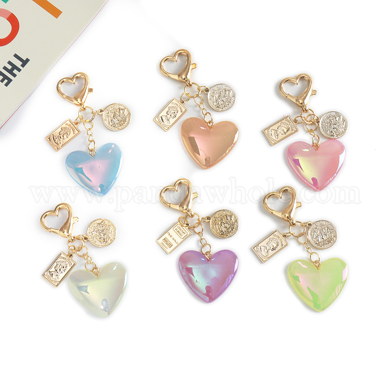 Акриловые подвесные украшения, с металлическими застежками, сердце
